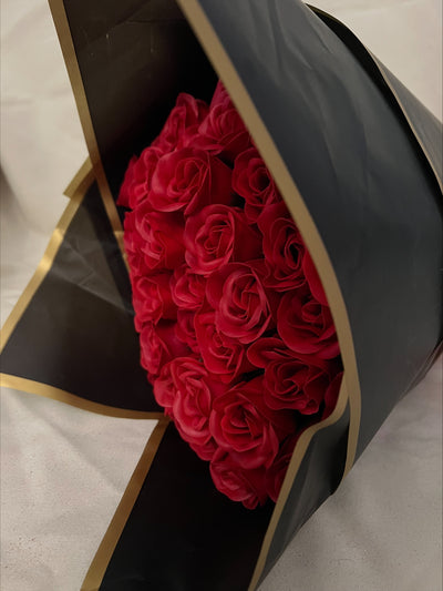 Filled with: 8x Aero Bars, 1x Aero Share Bag and Silk Red Roses