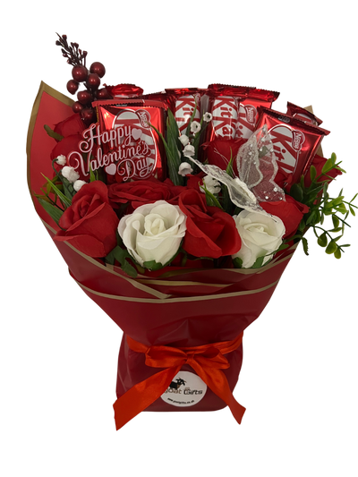 🎀 Artfully Arranged: The Assorted KitKat & Roses Valentine's Day Bouquet is expertly hand-tied and artistically arranged, ensuring a breathtaking presentation that speaks volumes. Tied with a luxurious satin ribbon, this bouquet is not just a gift; it's a declaration of your love and appreciation.
